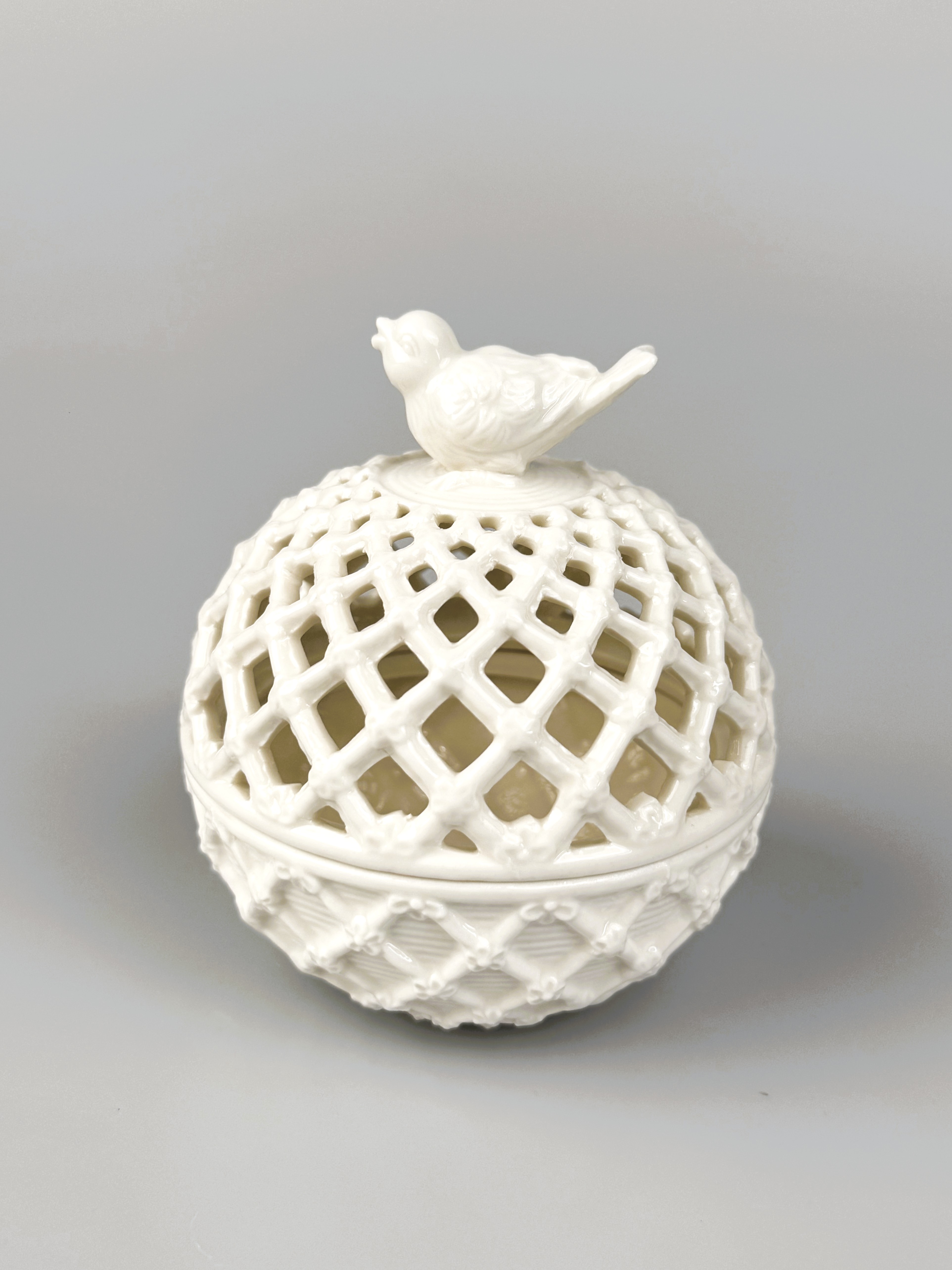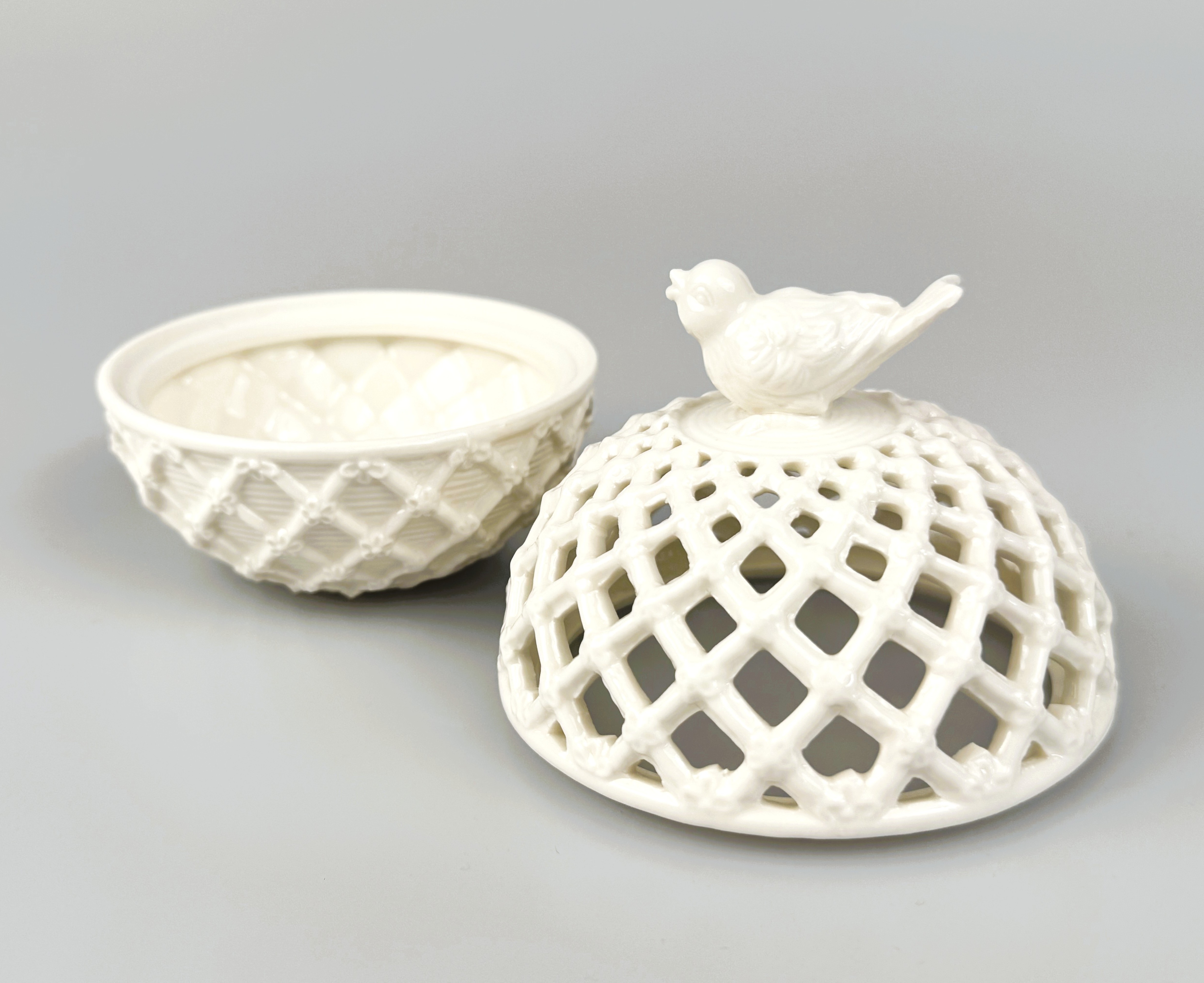Ażurowa Szkatułka z Figurką Ptaszka Porcelana