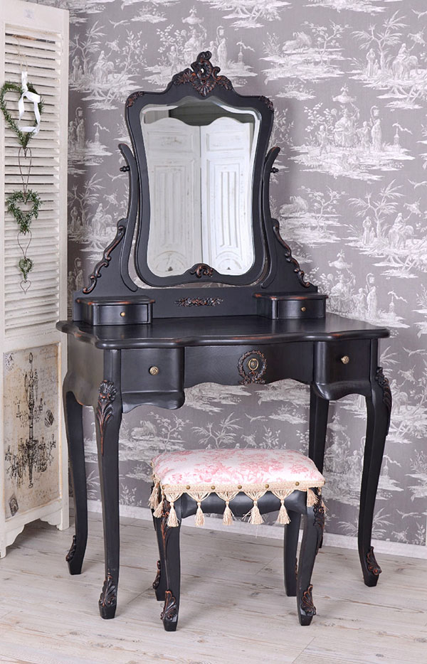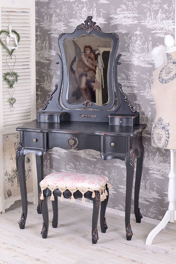 Czarna Toaletka z Lustrem w Stylu Rokoko
