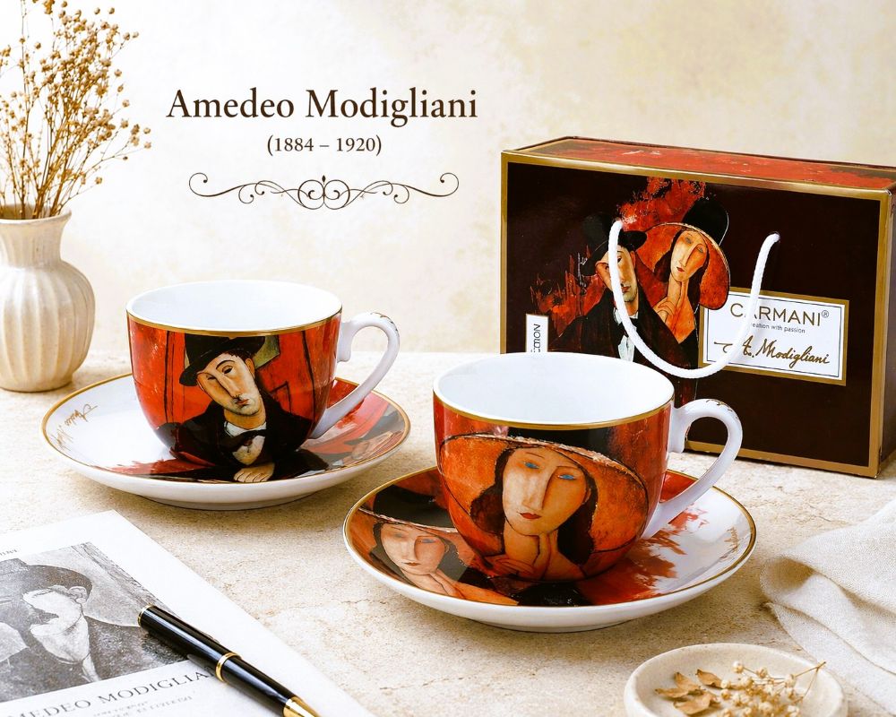 Dwie Filiżanki z Podstawkami Amedeo Modigliani Zestaw Upominkowy