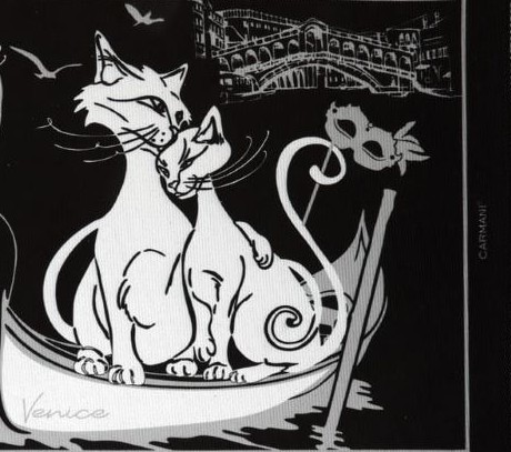 Dywanik w romantycznych klimatach - zakochane koty podczas karnawału w Wenecji.