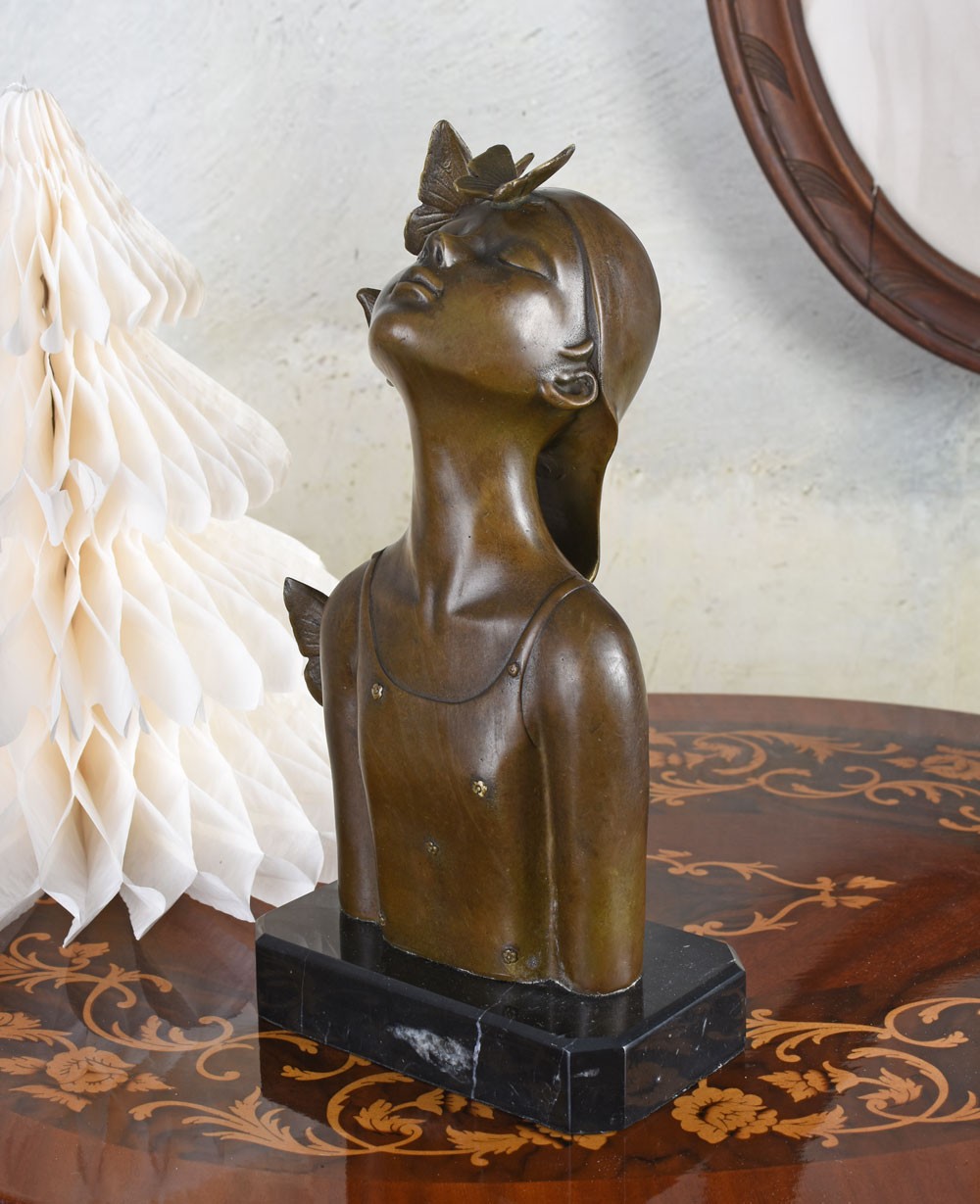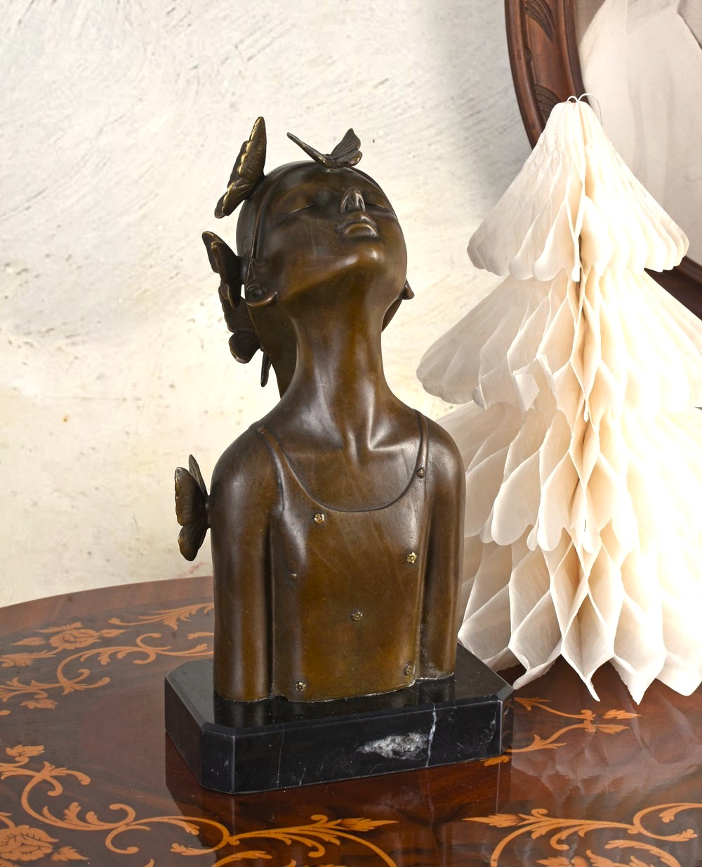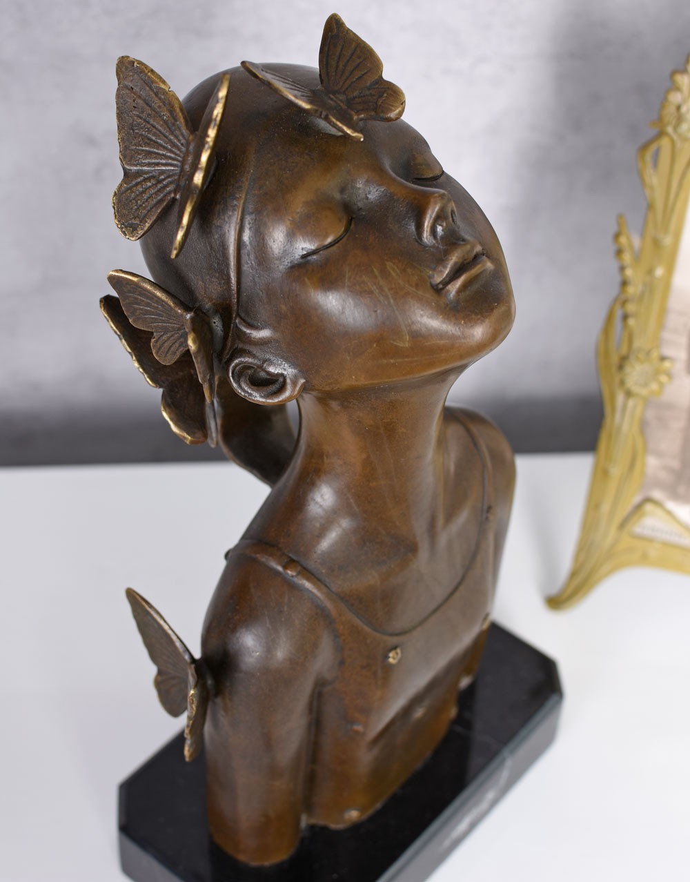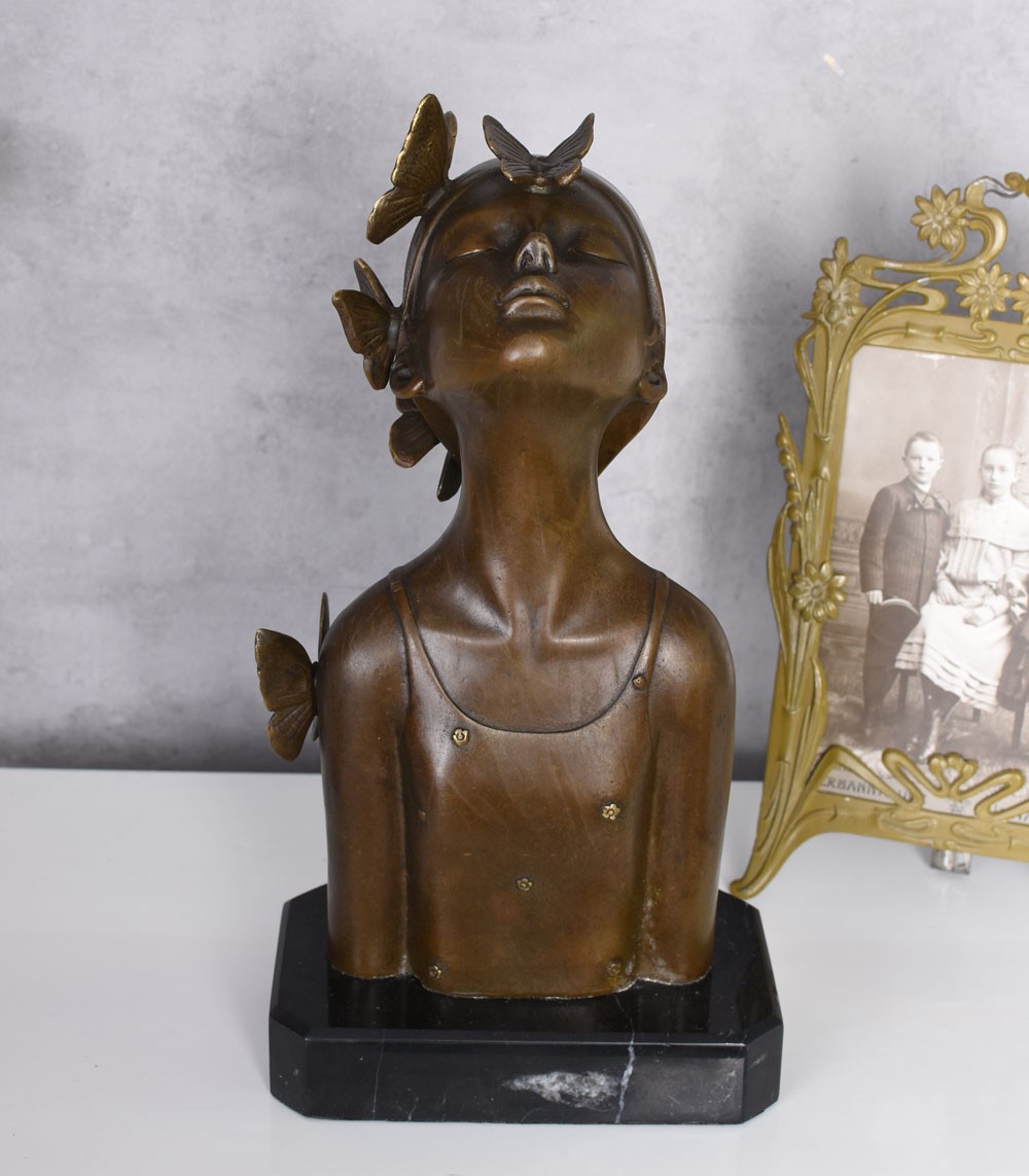 Popiersie Młodej Kobiety z Motylami Styl Secesyjny Figury z Brązu 30 cm