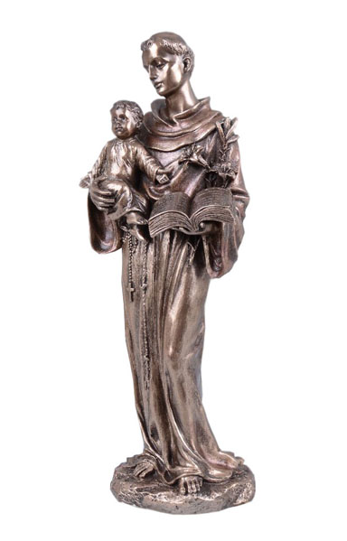 Ta niezwykle piękna figura św. Antoniego, trzymającego na rękach małego Jezusa zachwyca swoim perfekcyjnym wykonaniem. Figura pełna romantyzmu i spokoju. Polecamy na wyjątkowy upominek, zwłaszcza przy okazji różnych uroczystości religijnych.