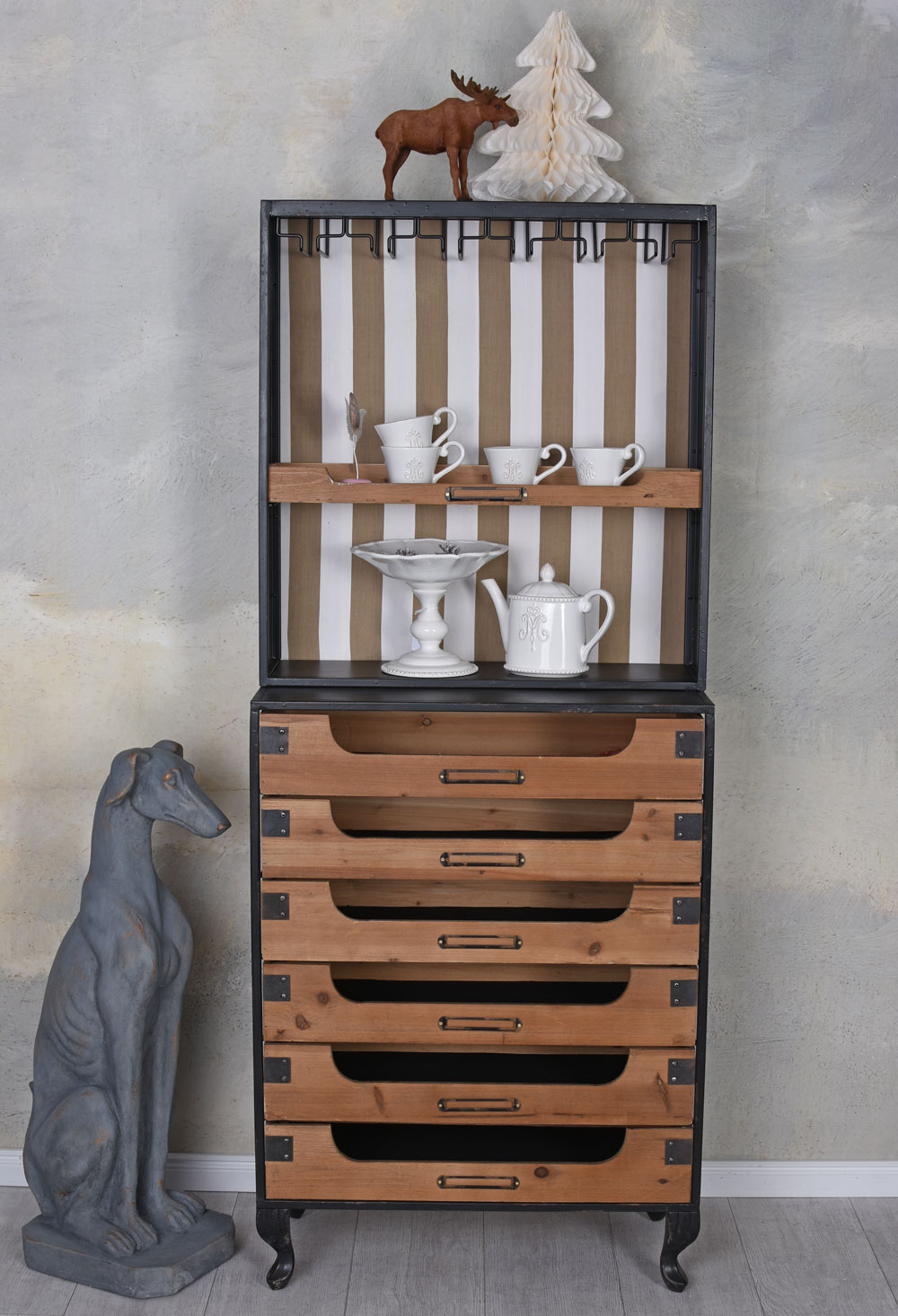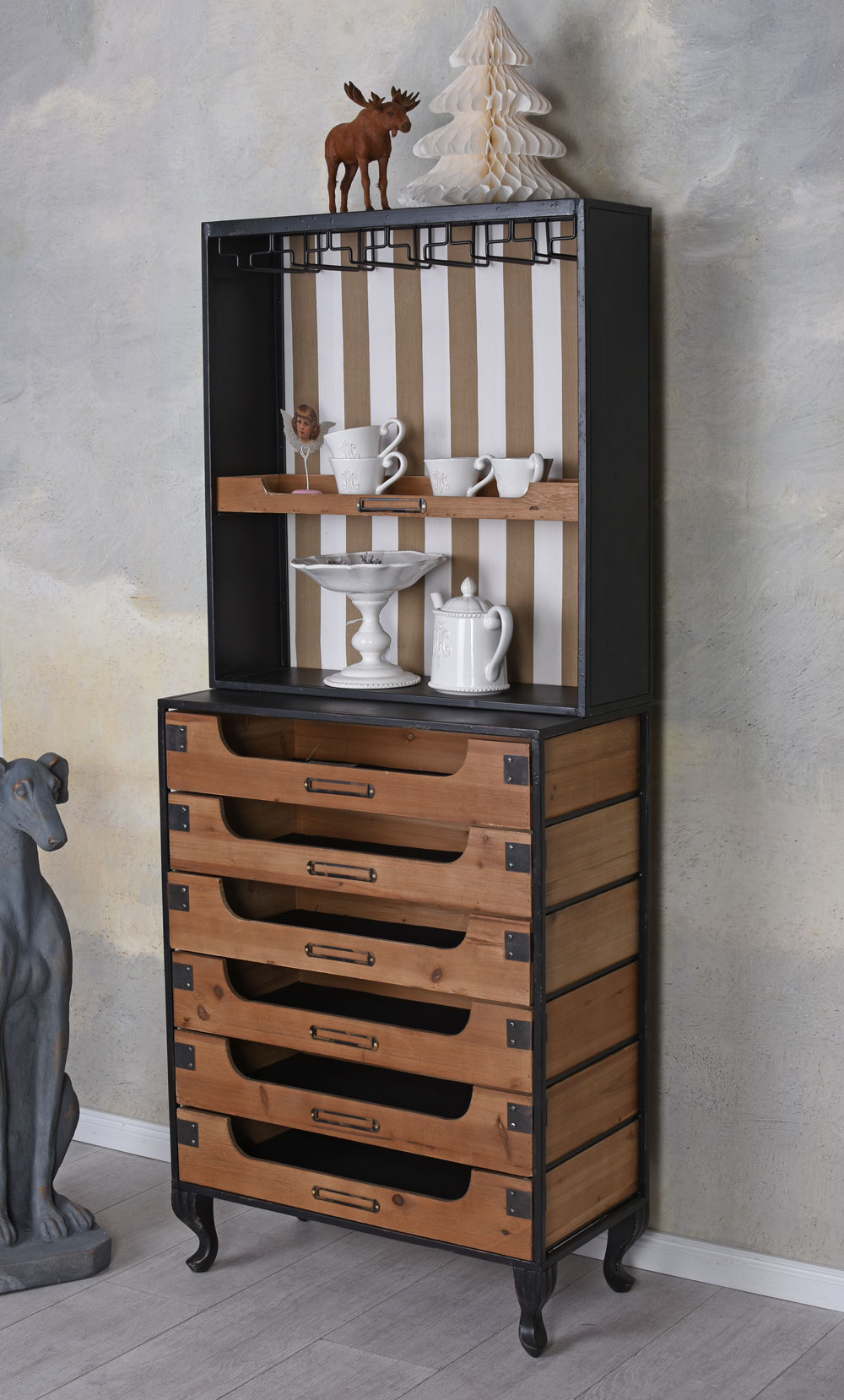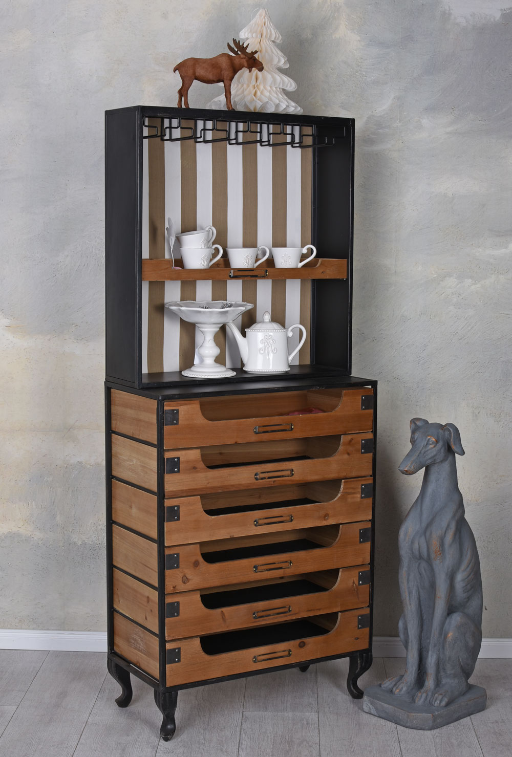 Wysoka Komoda Sześć Szuflad Uchwyty na Kieliszki Styl Industrialny Meble Loftowe